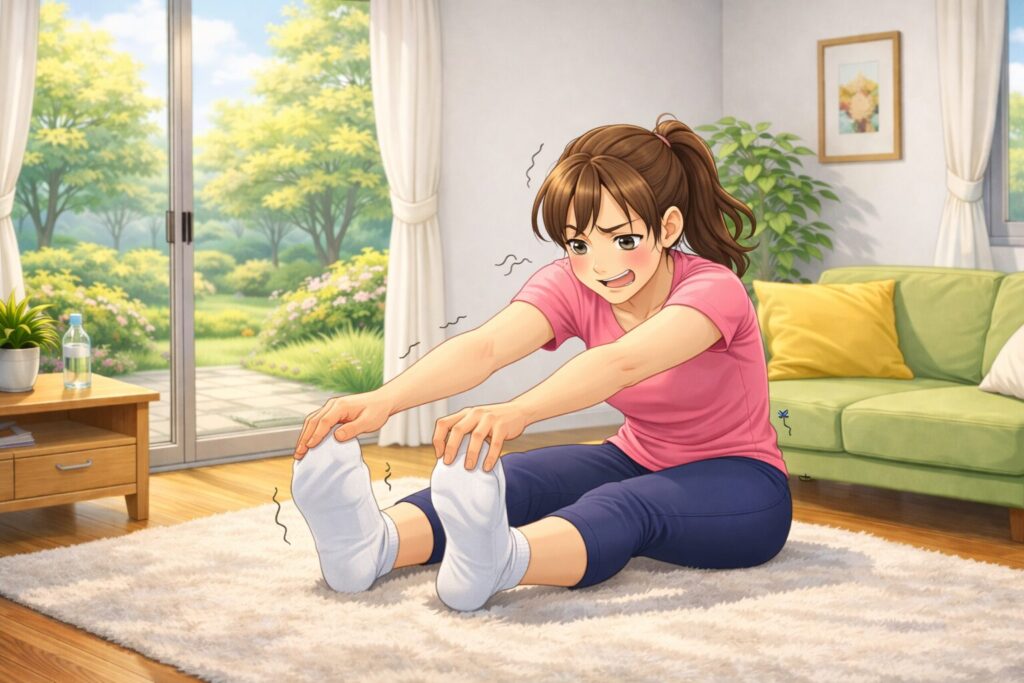 痛みの手前で止め、吐く呼吸を長くするのがポイントです。強さよりも「長さ」が可動域を広げます。