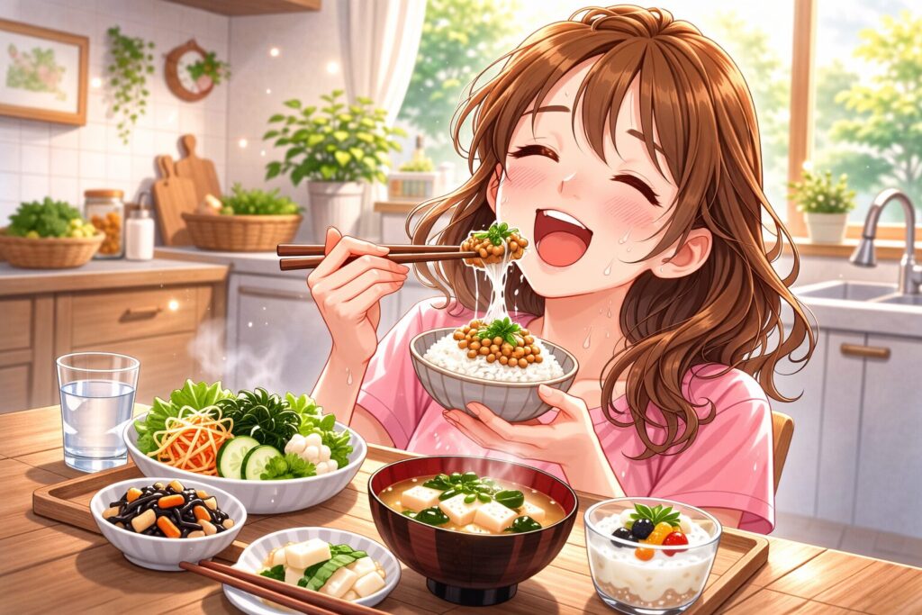 納豆・キムチ・ヨーグルト・オートミールは、腸内環境を整える代表的な組み合わせです。