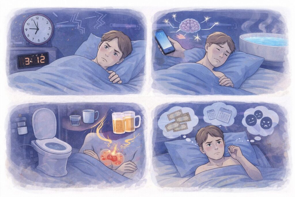 夜中に目が覚める原因は、年齢や体質だけでなく、日中〜就寝前の過ごし方の積み重ねであることがほとんどです。