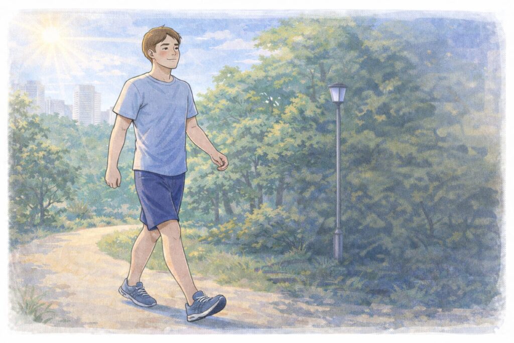 午前〜夕方までに行うのがおすすめ。夜遅い時間のウォーキングは覚醒しやすい人もいるため要注意。