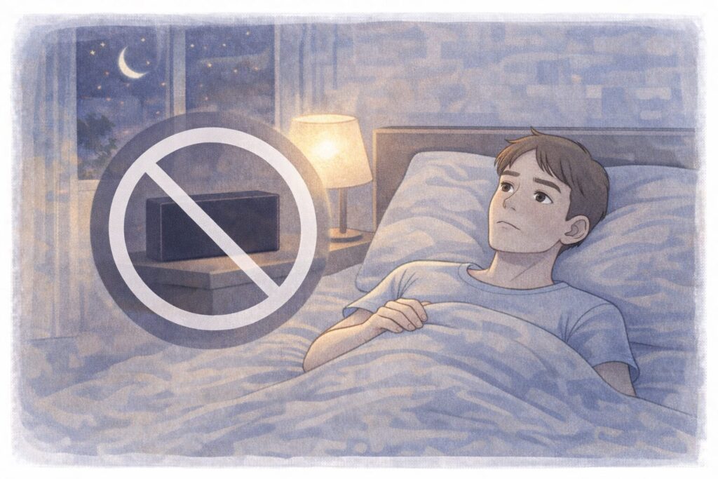 時刻を確認すると、「もう◯時だ」「あと◯時間しか寝られない」という思考が生まれ、覚醒が強まります。