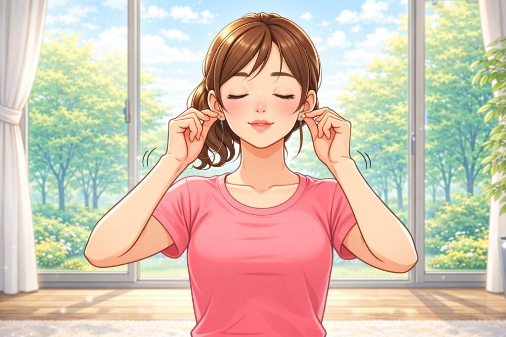 - 耳を軽く引っ張る
