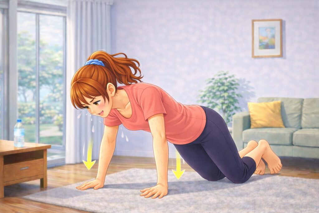 膝つきの腕立て伏せは負担が少なく、上半身の筋力を無理なく鍛えることができます。