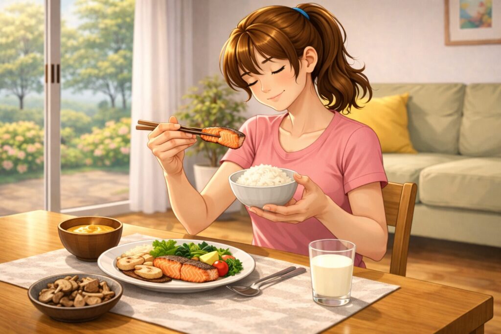- 魚(サーモン・サバなど)を食べる