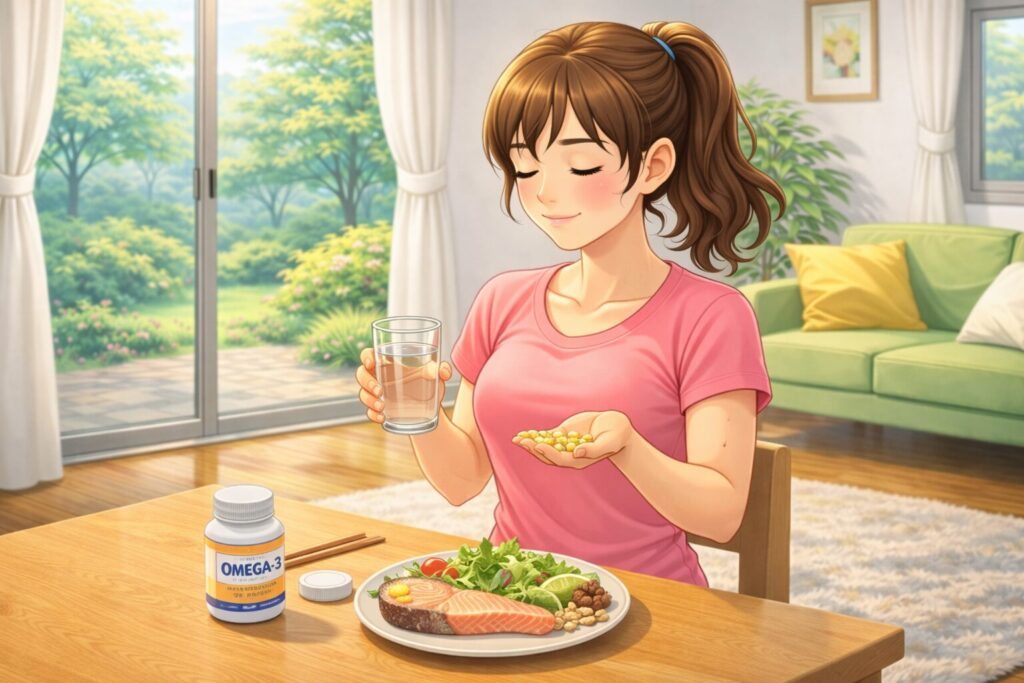 オメガ3脂肪酸やマグネシウムは、筋肉の緊張を和らげる働きがあるとされています。