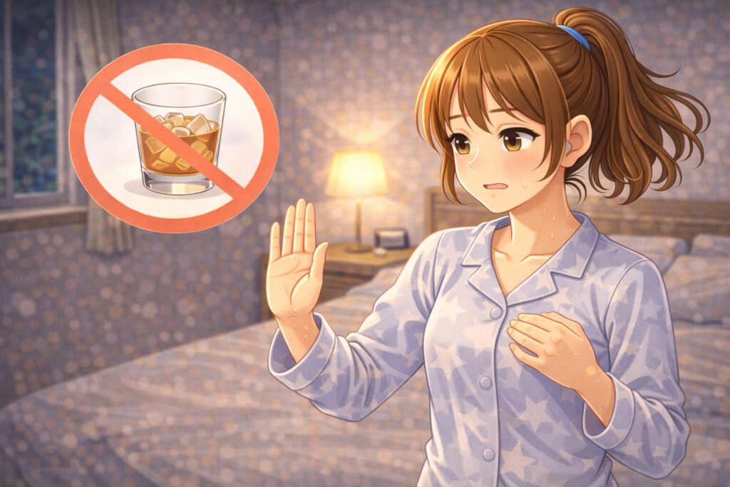 「寝る前に飲むとリラックスできる」と感じても、実際には睡眠が浅くなり、利尿作用でトイレも増えます。