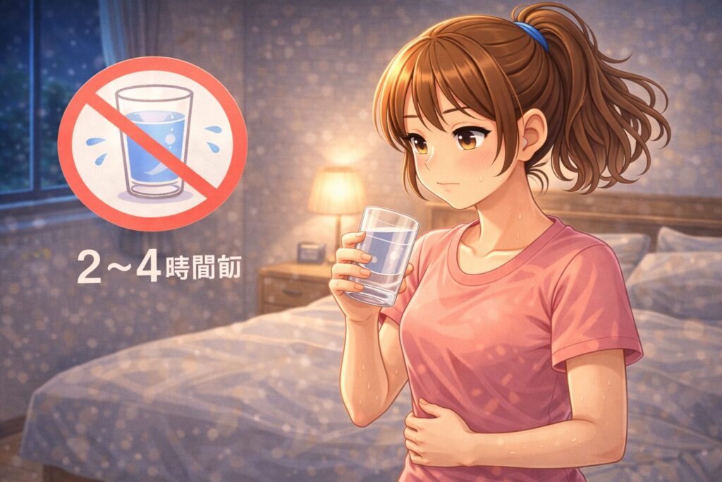 水分制限というより、“飲むタイミングの調整”が重要です。
