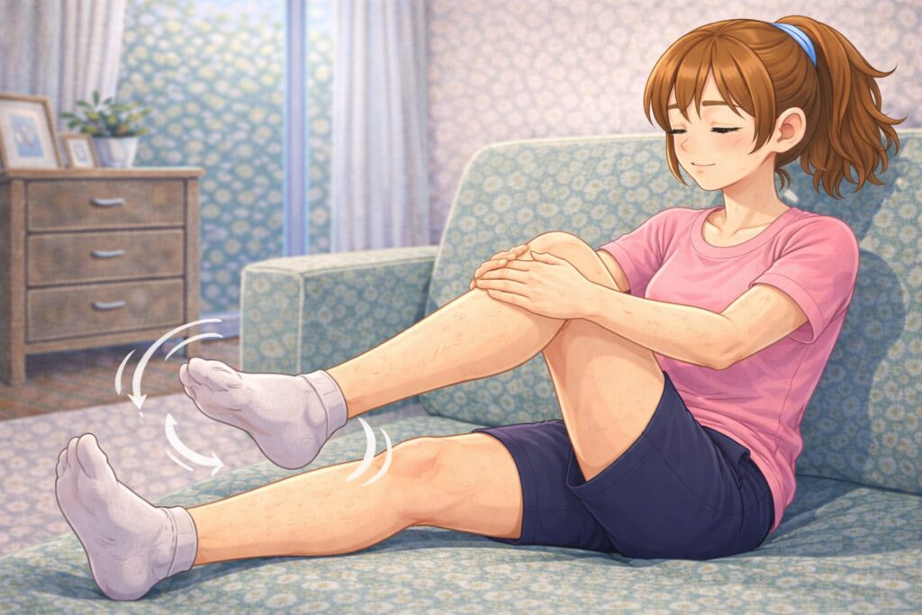 ふくらはぎを動かすと水分が先に戻り、夜中のトイレを減らしやすくなります。夜になるほど足が重く感じる人におすすめです。