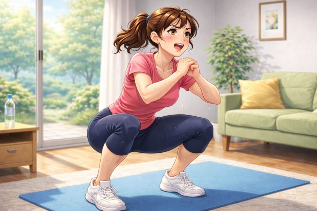 ① 深めのスクワット