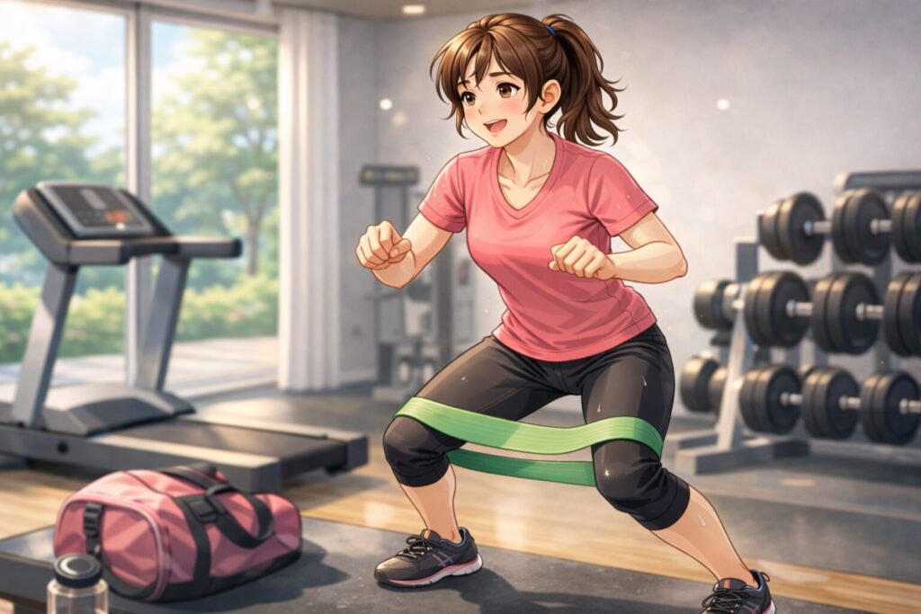 - ゴムバンドを膝に巻く