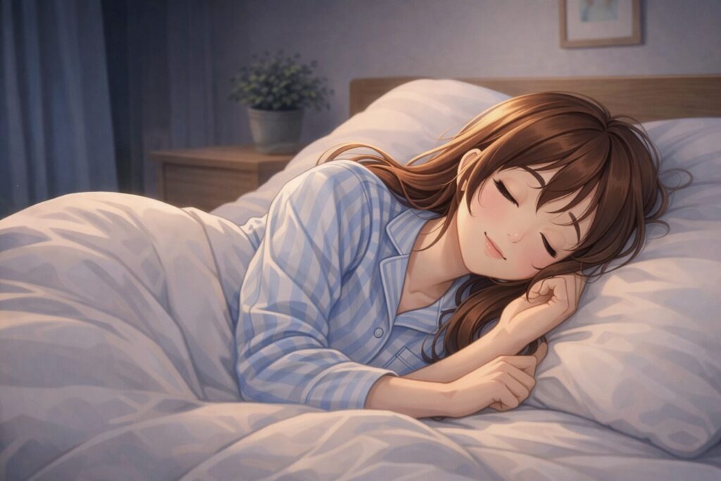 就寝時間が安定するとメラトニン分泌リズムが整い、入眠がスムーズになります。