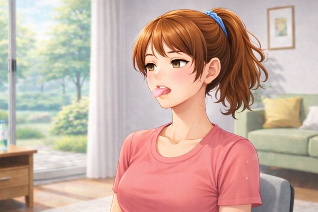 - 軽く口を開け、舌を前にゆっくり出す(10〜15秒キープ)