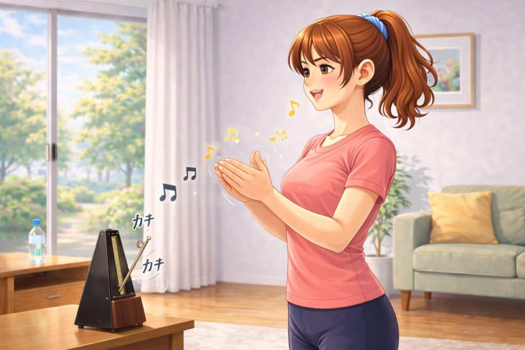 - メトロノームに合わせて手拍子(ゆっくりのテンポから)