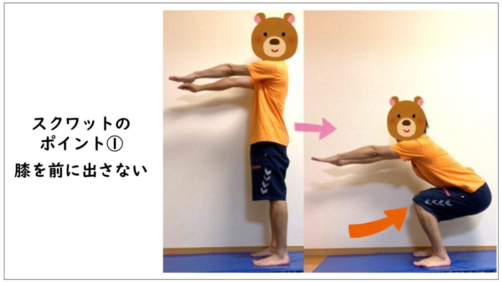 - 椅子に腰かけるようにスクワットを行う → 膝の位置が安定する