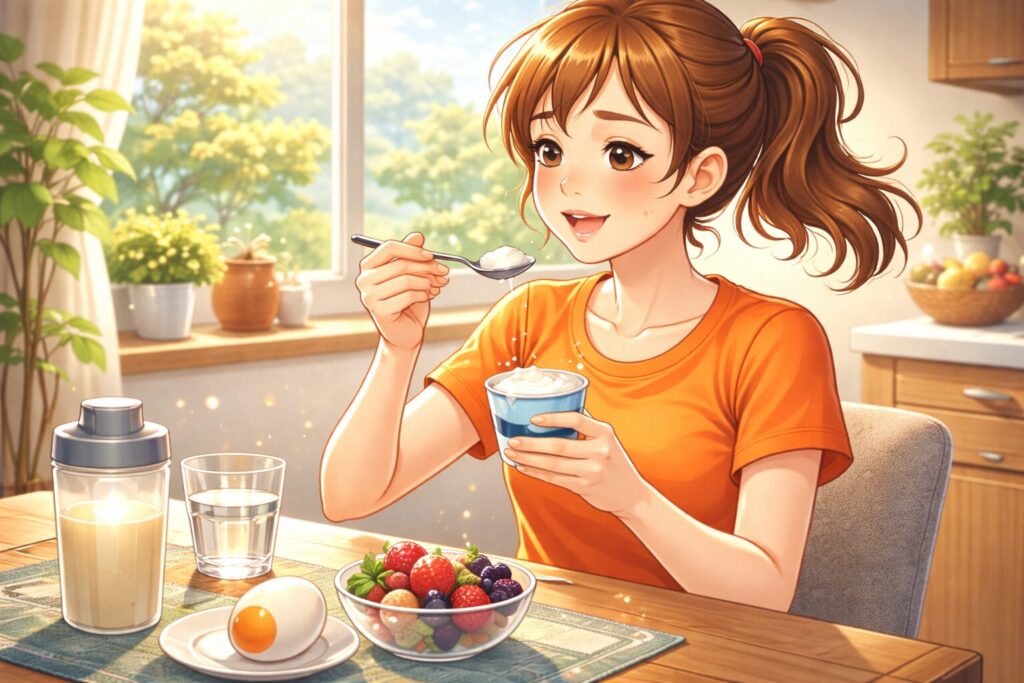 タンパク質は血糖値を急激に上げにくく、安定した覚醒を支えます。