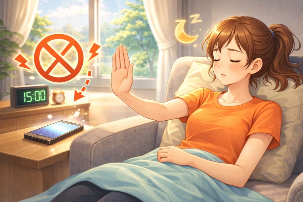 寝る前の刺激を減らすことが、パワーナップ成功の鍵です。