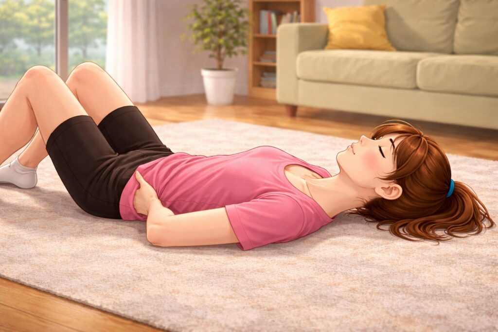 呼吸に合わせてお腹が動くことで、腹横筋が自然に使われます。