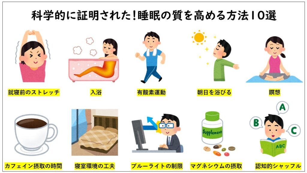 本記事では、科学的に効果が証明された睡眠の質を高める10の方法を紹介します。