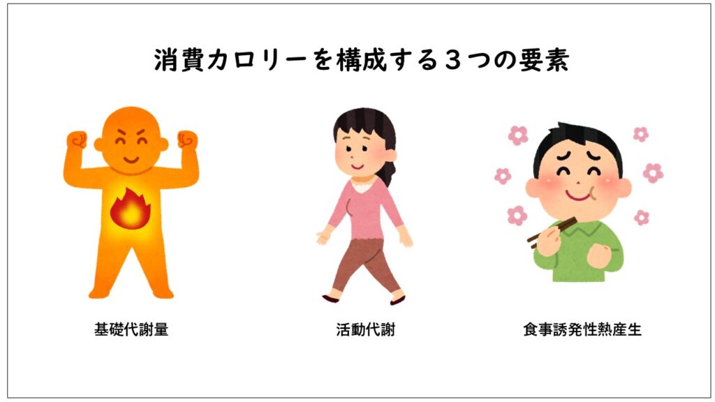 1日のカロリー消費は、次の3つの要素で構成されています。