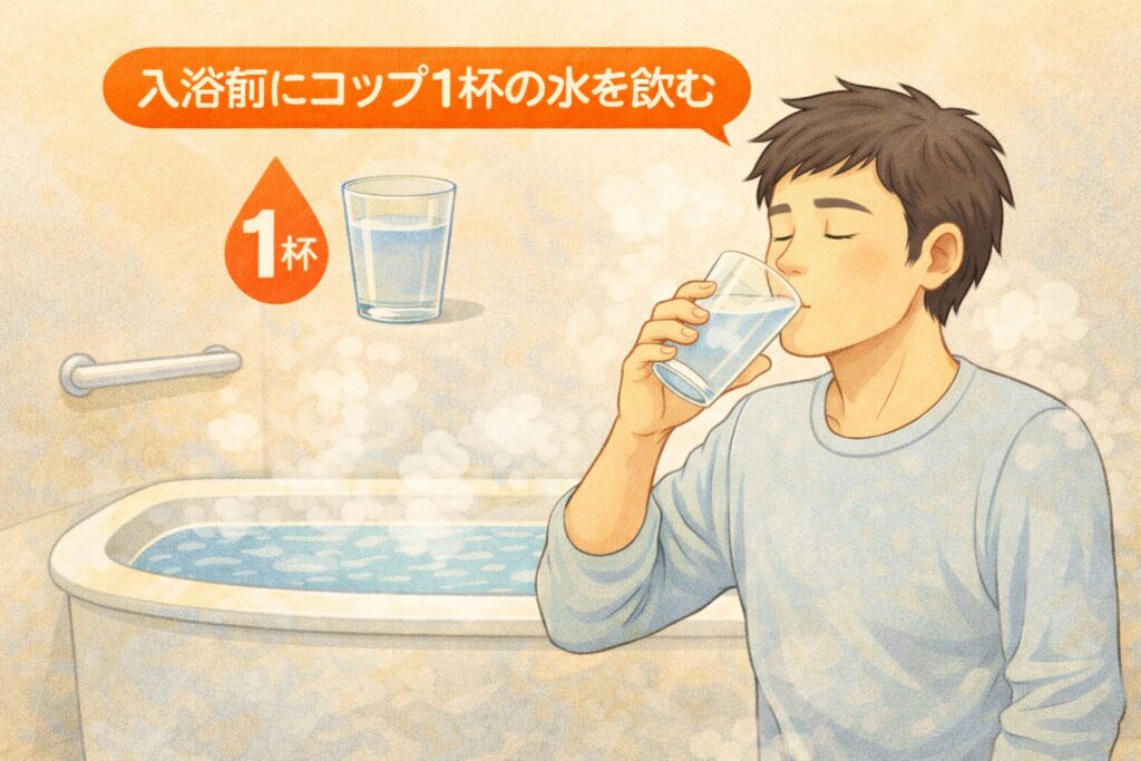 入浴前に水分を補給することで、循環血液量を保ち、血圧の急変を抑えます。