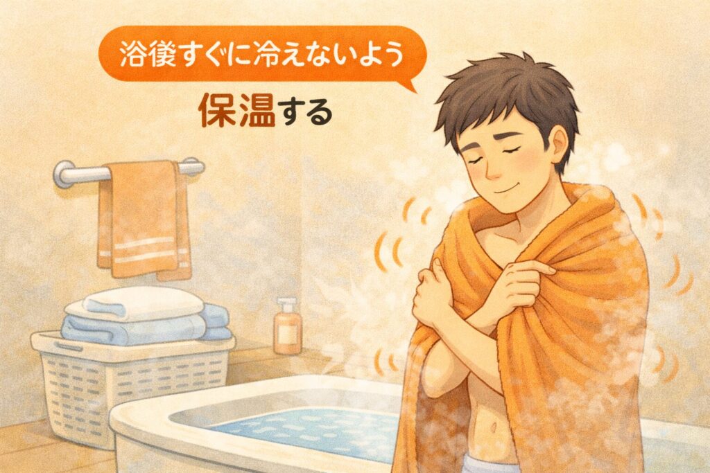 ⑥ 浴後すぐに冷えないよう保温する
