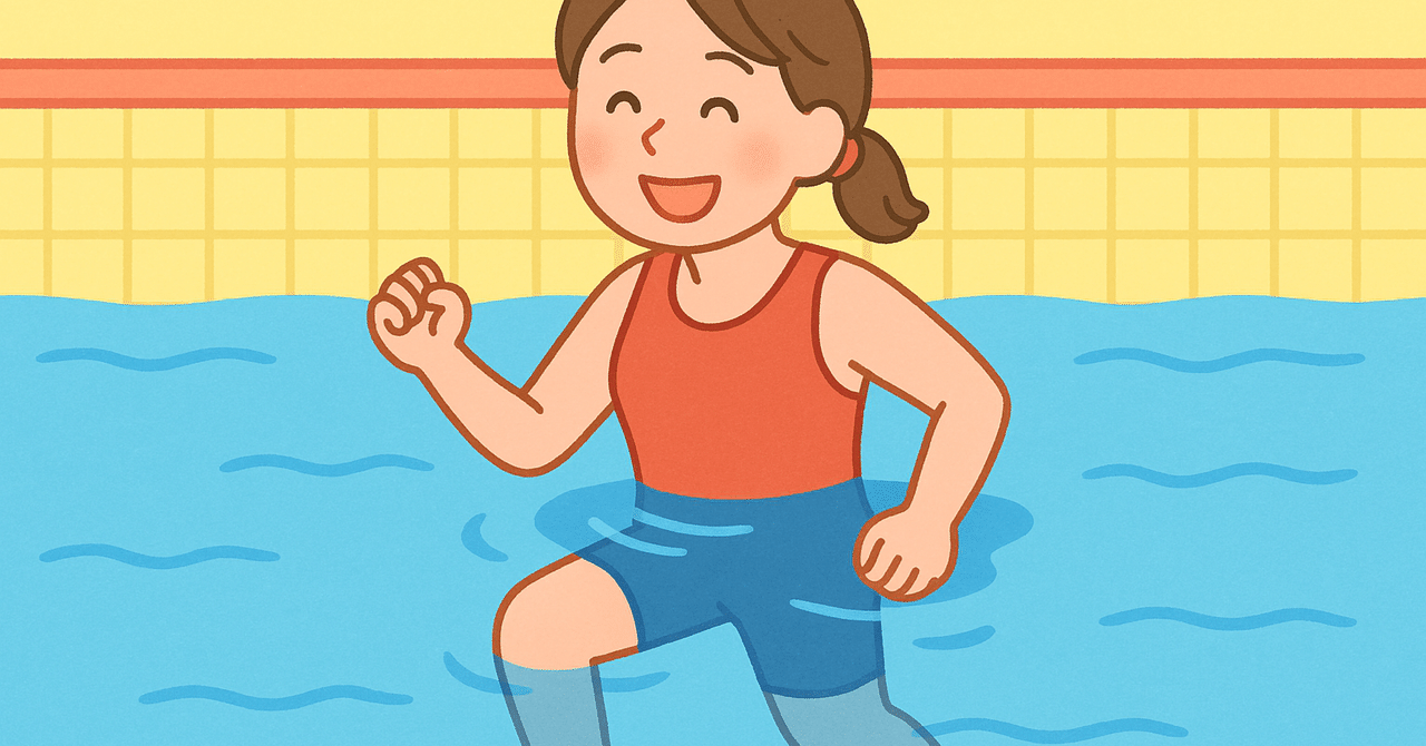 水中歩行とは水の浮力と抵抗を利用して歩く運動で、関節に負担をかけずに全身の血流と代謝を高める有酸素エクササイズです。