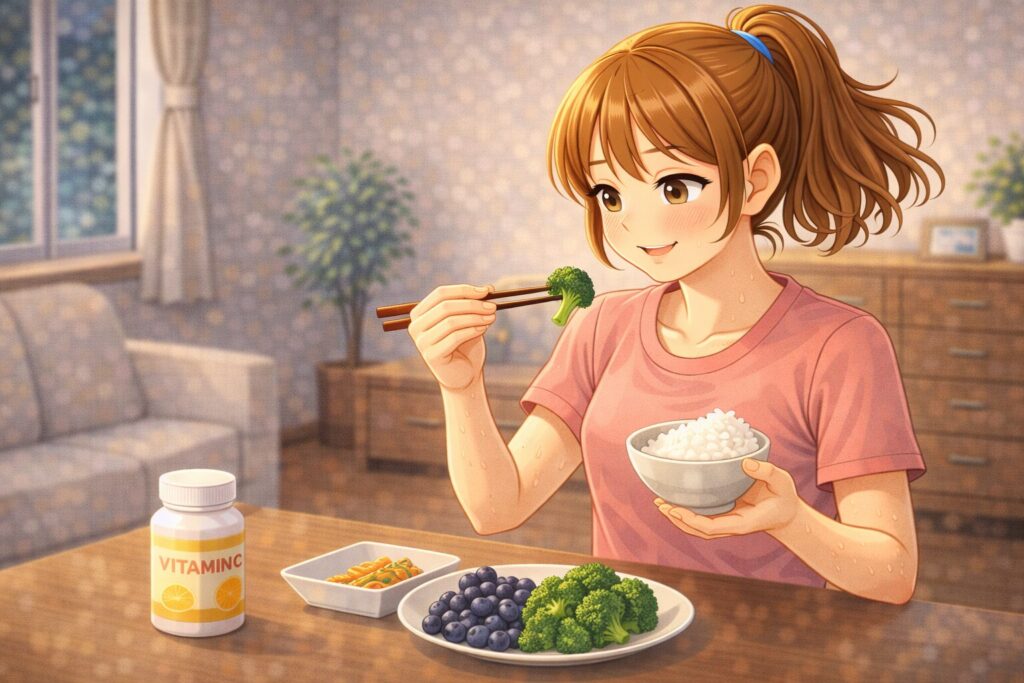 ⑦ 抗酸化食品の摂取(緑茶・ベリー類・ブロッコリーなど)